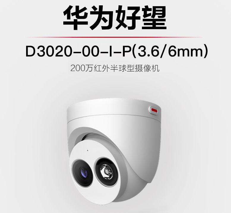 華為安防監(jiān)控攝像機200萬紅外夜視半球型室內(nèi)可拾音防塵防水POE供電手機遠程攝像頭適用于家庭商超 D3020-00-I-P攝像頭 焦距(2.8/3.6/6.0mm)